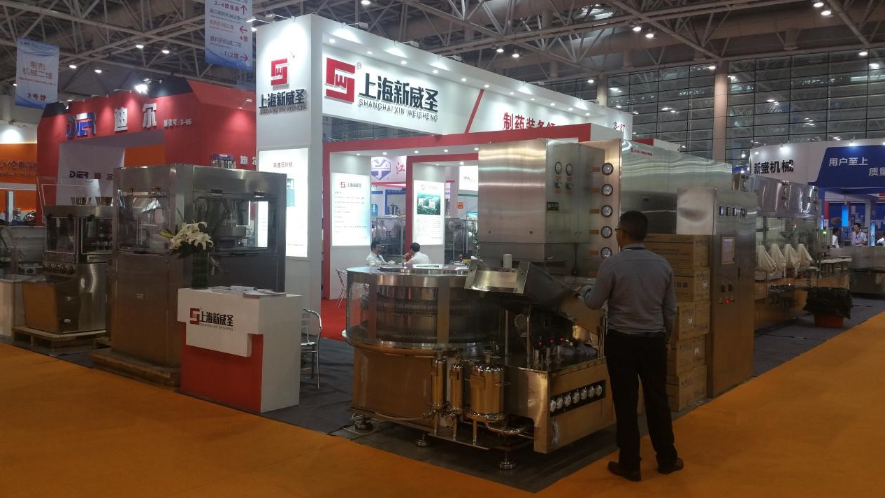 此次药机展集聚了来自欧洲、美国、日本、韩国等20个国家和地区的千余家参展厂商,共分10个展馆,参展厂商1300多家,展位总数7300多个,创下全国制药机械博览会举办以来新高。展出设备涵盖制剂机械、原料药机械、药品包装机等8大类近万台(套)。作为国内注射剂生产联动线产品的代表之一,上海新威圣制药机械有限公司也应邀参加了此次展会。